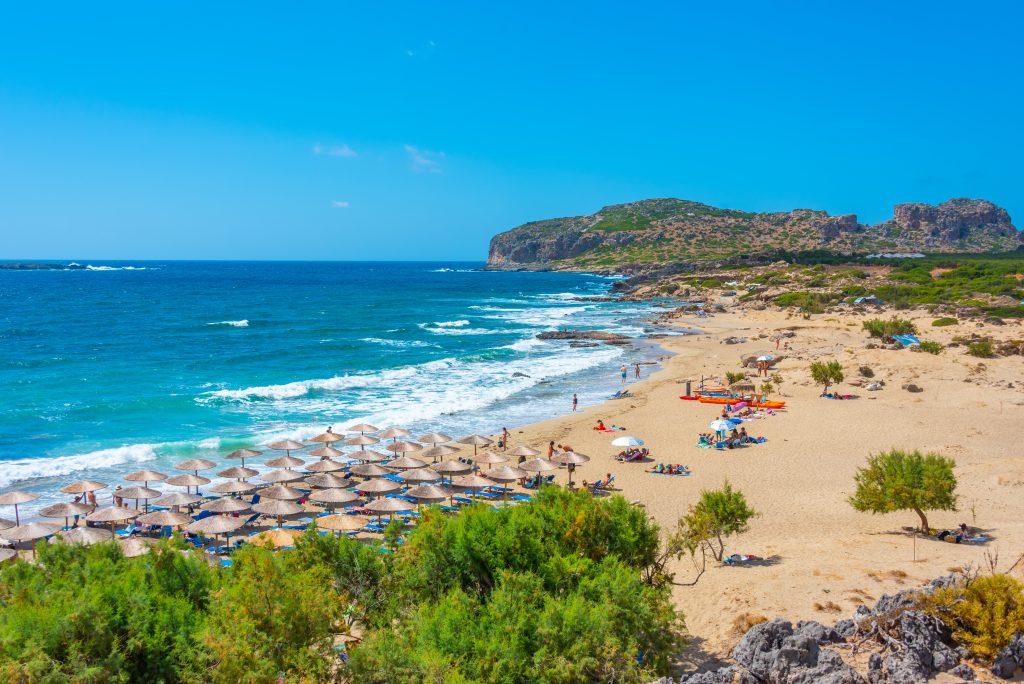 Der feinsandige, helle Strand von Falassarna erstreckt sich kilometerlang – weit und offen, mit türkisfarbenem, klarem Wasser, das sich ideal zum Schwimmen und Schnorcheln eignet. Anders als viele kleinere Buchten Kretas beeindruckt Falassarna durch seine Weite: Hier findet jeder seinen Platz – ob Sonnenanbeter, Familien oder Ruhesuchende.